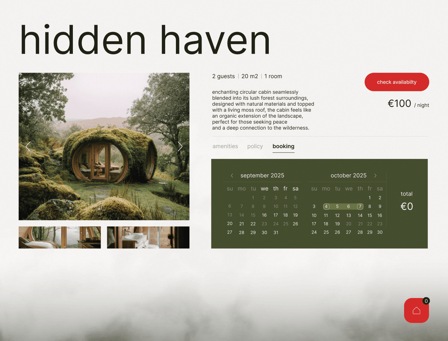 Календарь на странице домика, а не в каталоге. В каталоге выбор дат конкурирует с выбором домика — слишком много задач одновременно. На странице домика календарь появляется тогда, когда решение уже почти принято.